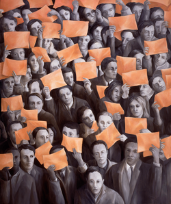 ![]() Mujeres Oleo sobre tela 127 x 127 cm | ![]() Mujeres detalle Oleo sobre tela 127 x 127 cm | ![]() Transeúntes Oleo sobre tela 127 x 127 cm |